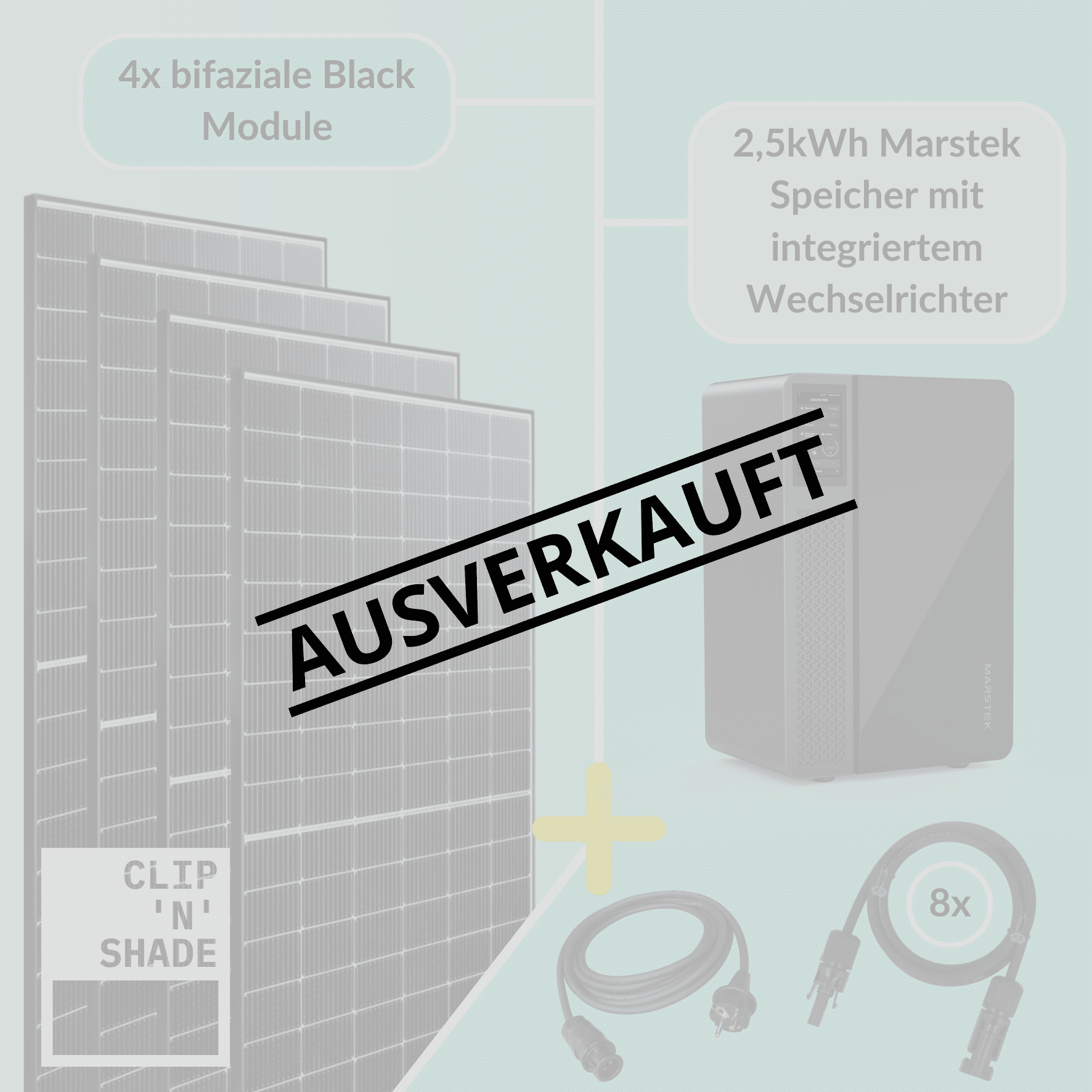 - Attention : en raison de problèmes de livraison et de fortes variations de prix, nos modules varient. Si vous souhaitez connaître le modèle exact avant d'acheter, veuillez vous adresser à notre support clientèle via office@clipnshade.de.