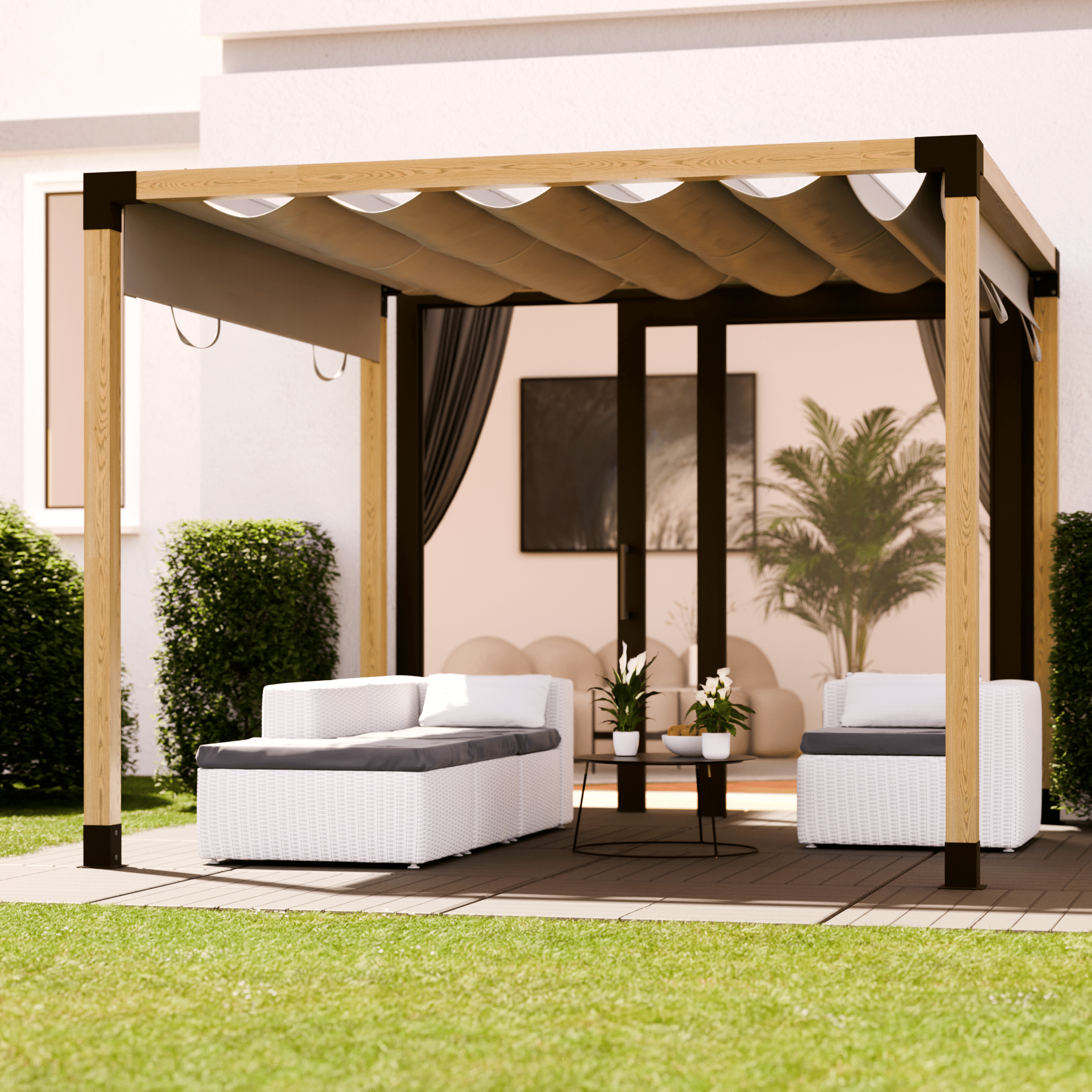 Offre suffisamment de place pour ta terrasse, ton salon de jardin ou ton coin salon - et protège de manière fiable du soleil et de la pluie légère. Des dimensions plus importantes sont possibles avec les "kits doubles".