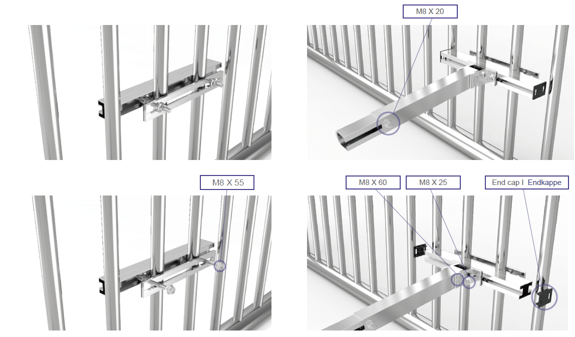 Le kit de montage comprend tous les composants et éléments de fixation nécessaires pour fixer le module solaire à la balustrade de manière stable et fiable. Il est spécialement conçu pour un seul module, ce qui permet une installation facile sans devoir procéder à d'importants travaux de transformation.