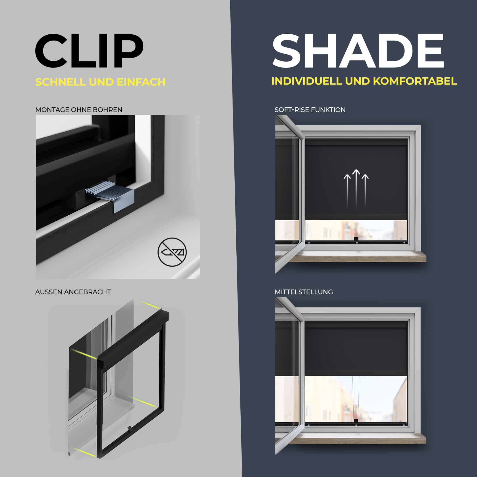 CLIP'N'SHADE Store extérieur sur mesure pour fenêtre