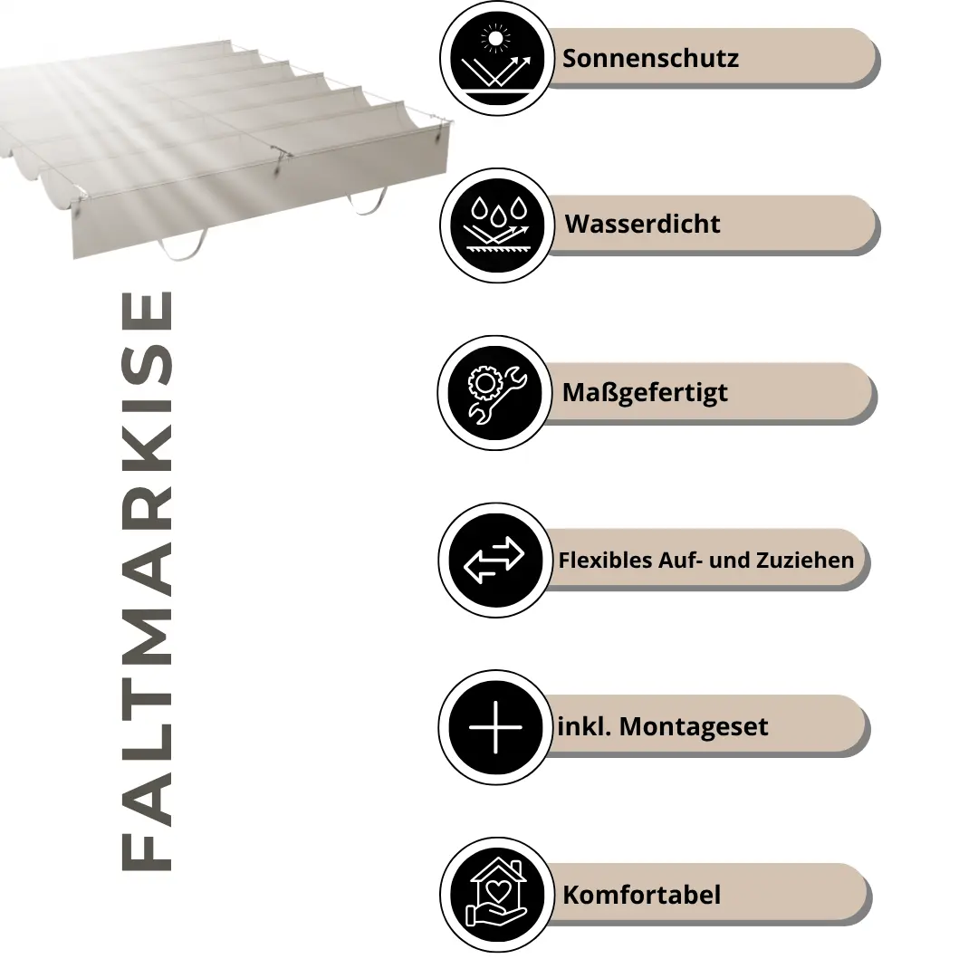 Store pliant Voile d'ombrage coulissante pour pergola / toit de terrasse - Ombrage de toit