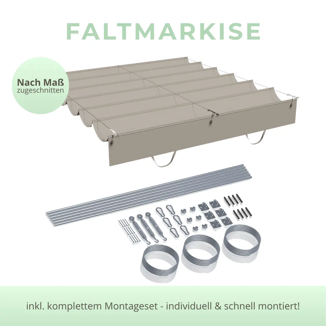Le tissu utilisé est perméable à l'air et à l'eau, résistant aux UV et assure un climat agréable sous ton abri - sans accumulation de chaleur. Il sert également de protection contre la pluie en cas de pluie légère.