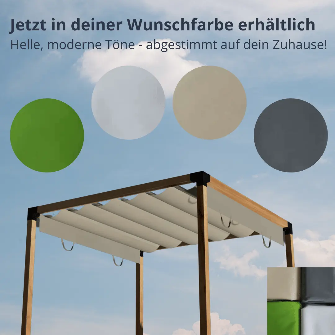 Profite de ton espace extérieur en toute flexibilité - avec notre kit complet de voiles d'ombrage coulissants pour abris de terrasse et pergolas. Le système de tension de câble bien pensé te permet de faire de l'ombre en continu, en fonction de la position du soleil et de tes souhaits personnels.