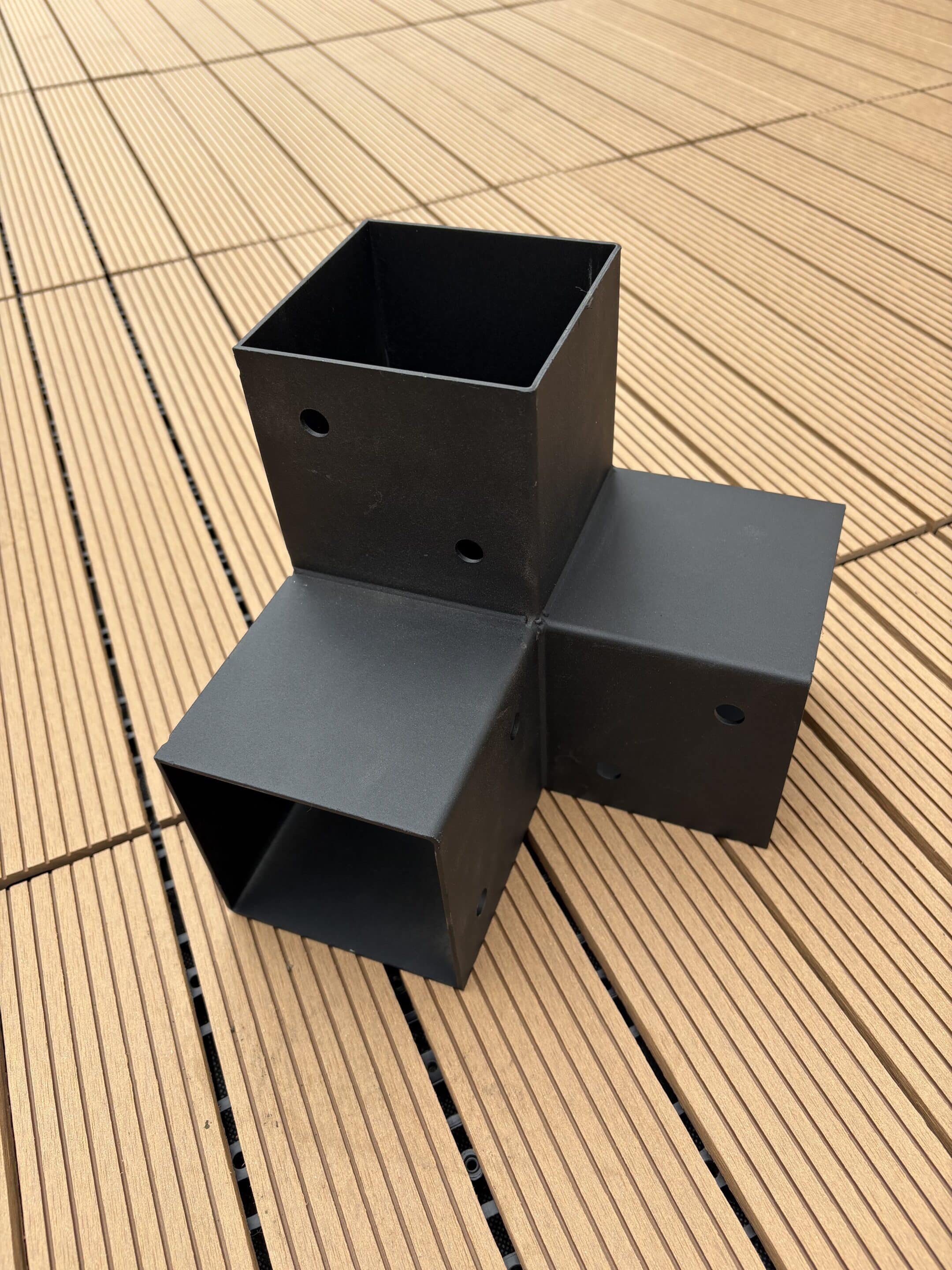 Grâce à nos raccords d'angle en acier de haute qualité, le montage de ton toit de terrasse, de ta pergola ou de ton abri de voiture se fait en un tour de main. Les raccords fabriqués avec précision assurent une construction stable et un aspect moderne.