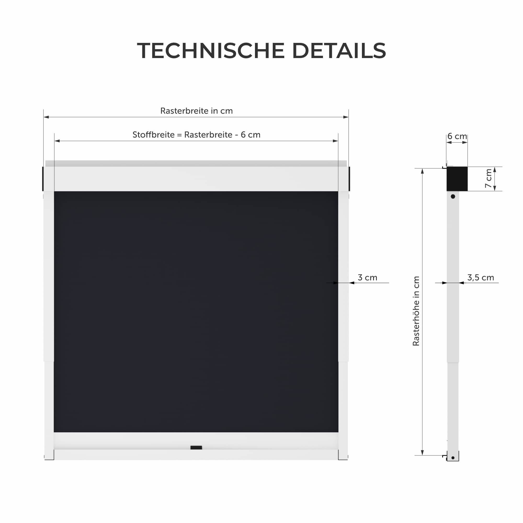 Notre Configurateur t'aide à trouver la bonne largeur de trame. La hauteur des stores est réglable en continu grâce à des rails de guidage télescopiques. En raison des largeurs de trame, il se peut que ton store extérieur ne soit pas tout à fait à l'extérieur dans l'ouverture de la maçonnerie et qu'il dépasse dans la zone visible lorsque la fenêtre est ouverte. Cependant, lorsque tu fermes le battant de la fenêtre, le rail de guidage est généralement caché par ton profilé de battant de fenêtre. Ainsi, 100 % protection contre la chaleur et une bonne optique sont garanties. Plus rien ne s'oppose à une protection solaire idéale !